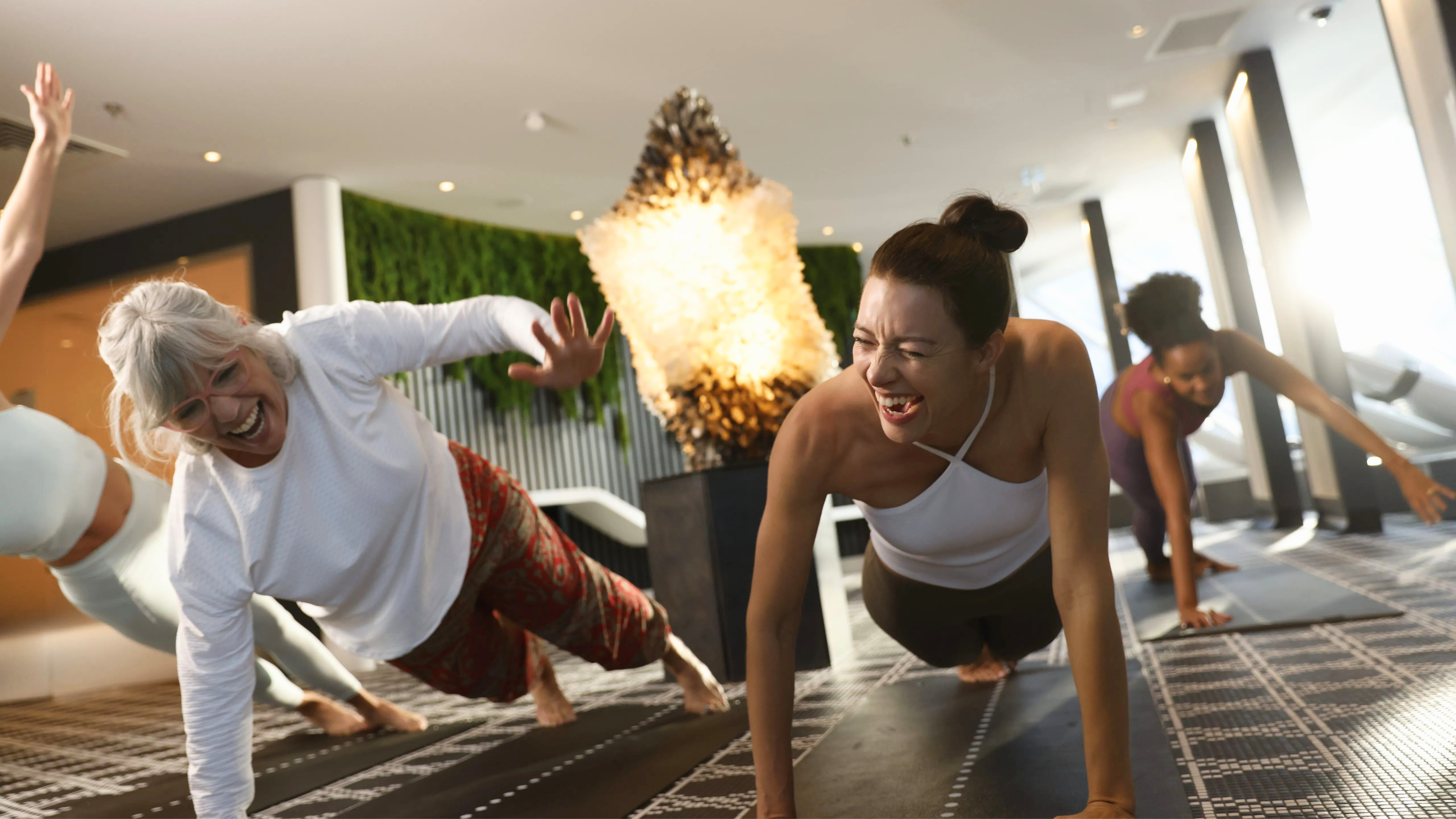 - Fitness Center with Technogym equipment, Peloton cycling, LIT Bungee Fit, yoga classes, and ocean-view aerobics studio